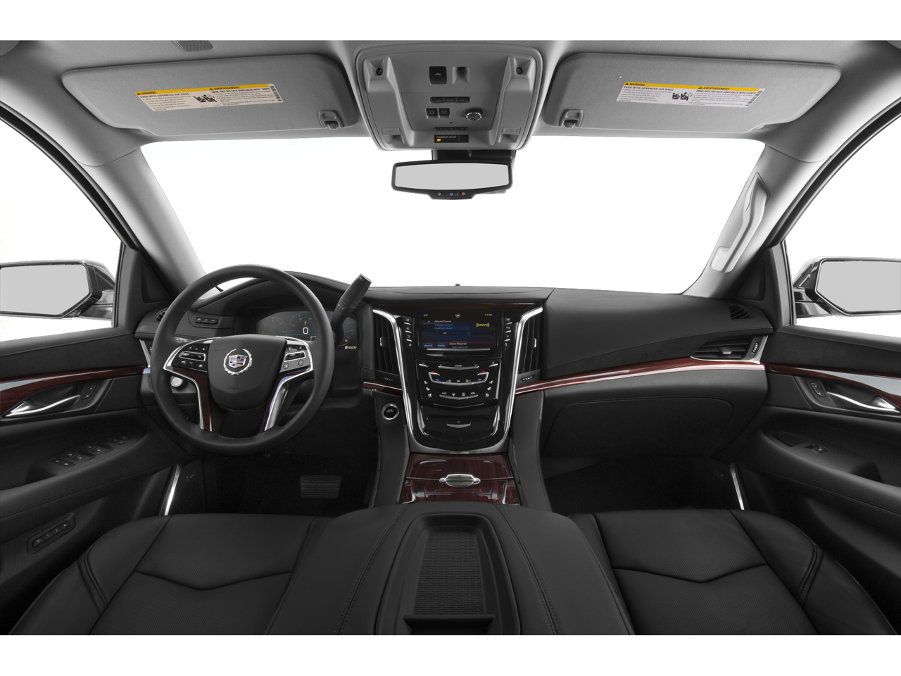 REAR SEAT includes two 9" screen DVD players (Blu-Ray capable) with remote control, four 2-channel wireless infrared headphoness, auxiliary audio/video jacks on rear of center console, sound compression, CD-R and CR-R/W capability, LED backlighting display, MP3 capable (Includes (DNU) third row DVD screen.), 8" diagonal color information display featuring touch response, haptic feedback, gesture recognition and Natural Voice Recognition. Five USB ports, including one in the articulating storage door/bin, SD card slot and auxiliary audio port (STD), ENGINE, 6.2L V8 WITH ACTIVE FUEL MANAGEMENT Spark Ignition Direct Injection (SIDI) and Variable Valve Timing (VVT), includes aluminum block construction (420 hp [313.2 kW] @ 5600 rpm, 460 lb-ft of torque [621 N-m] @ 4100 rpm) (STD), HEAVY-DUTY, 6L80, ELECTRONICALLY CONTROLLED with overdrive and tow/haul mode. Cadillac Luxury with White Diamond Tricoat exterior and Shale w/Cocoa Accents interior features a 8 Cylinder Engine with 420 HP at 5600 RPM*.