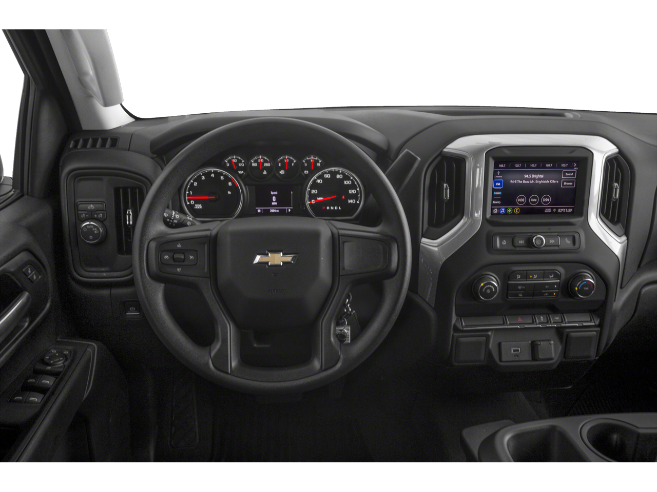 ENGINE, 5.3L ECOTEC3 V8 with available Active Fuel Management, (355 hp [265 kW] @ 5600 rpm, 383 lb-ft of torque [518 Nm] @ 4100 rpm) NOTE: Some models built beginning in March will include (YK9) Not Equipped with Active Fuel Management. 6" RECTANGULAR (dealer-installed), AUTO-LOCKING REAR DIFFERENTIAL, CHEVROLET INFOTAINMENT 3 SYSTEM 7" diagonal color touchscreen, AM/FM stereo. Additional features for compatible phones include: Bluetooth® audio streaming for 2 active devices, voice command pass-through to phone, wired Apple CarPlay® and Android Auto® capable. (STD), TRANSMISSION, ELECTRONICALLY CONTROLLED with overdrive and tow/haul mode. Includes Cruise Grade Braking and Powertrain Grade Braking. Chevrolet Custom with SHADOW GRAY METALLIC exterior and JET BLACK interior features a 8 Cylinder Engine with 310 HP at 5600 RPM*.