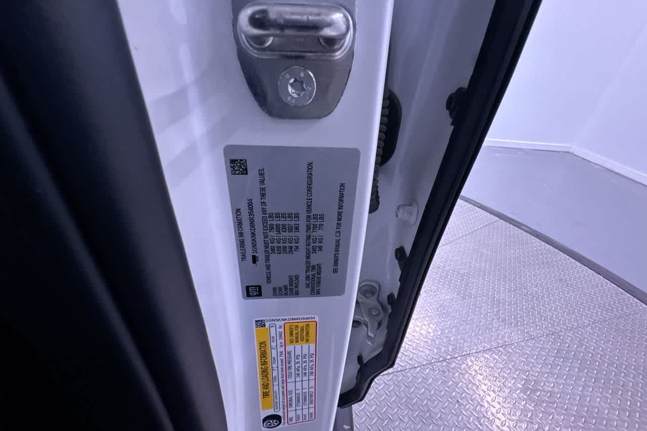 LT SIGNATURE PLUS PACKAGE includes (WPL) Luxury Package content, (RD4) 20" painted aluminum wheels with machine face and Argent Metallic pockets and (C3U) Panoramic power sunroof, LUXURY PACKAGE includes (WPD) Driver Alert Package content, (UV2) HD Surround Vision, (UKK) Rear Pedestrian Alert, (A45) memory settings, (DXR) outside heated power-adjustable, power-folding, body-color mirrors with driver-side auto-dimming and integrated turn signal indicators, (N38) power tilt and telescopic steering column, (KI3) heated steering wheel, (KA6) second row outboard heated seats, (ATT) second row power 60/40 split-folding bench seats and (AS8) third row power 60/40 split-folding bench seats Vehicles built prior to December 6, 2021, include heated steering wheel. Certain vehicles built on or after December 6, 2021, will be forced to include (00G) Not Equipped with Heated Steering Wheel, which removes heated steering wheel. Vehicles built prior to March 14, 2022 and after, SEATS, SECOND ROW BUCKET, POWER RELEASE, CHEVROLET INFOTAINMENT 3 PREMIUM SYSTEM WITH GOOGLE BUILT-IN 10.2" diagonal HD color touchscreen, includes multi-touch display, AM/FM stereo, Bluetooth® streaming audio for music and most phones; featuring wireless Android Auto® and Apple CarPlay® capability for compatible phones, advanced voice recognition, in-vehicle apps, personalized profiles for infotainment and vehicle settings (STD), HEATED Vehicles built prior to December 6, 2021 and after March 27, 2022, include heated steering wheel. Certain vehicles built on or after December 6, 2021 through March 27, 2022, will be forced to include (00G) Not Equipped with Heated Steering Wheel, which removes heated steering wheel. See dealer for details or the window label for the features on a specific vehicle.), 5.3L ECOTEC3 V8 with Dynamic Fuel Management, Direct Injection and Variable Valve Timing, includes aluminum block construction (355 hp [265 kW] @ 5600 rpm, 383 lb-ft of torque [518 Nm] @ 4100 rpm) (STD), 10-SPEED AUTOMATIC electronically controlled with overdrive, includes Traction Select System including tow/haul (Standard with (L84) 5.3L EcoTec3 V8 engine only.) (STD), DRIVER ALERT PACKAGE includes (UKC) Lane Change Alert with Side Blind Zone Alert and (UFG) Rear Cross Traffic Alert. Chevrolet LT with Iridescent Pearl Tricoat exterior and Jet Black interior features a 8 Cylinder Engine with 355 HP at 5600 RPM*.